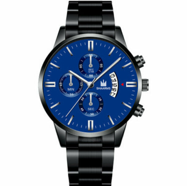 新款男日曆鋼帶石英錶【黑帶黑殼黑面玫針】 (微瑕疵 介意勿拍)