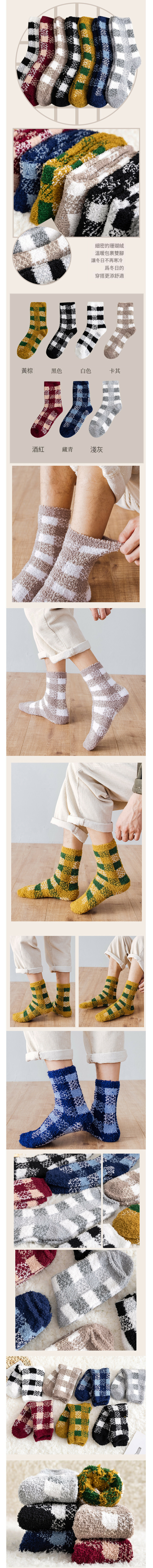 熱賣男士方格加厚保暖襪子(卡其色)