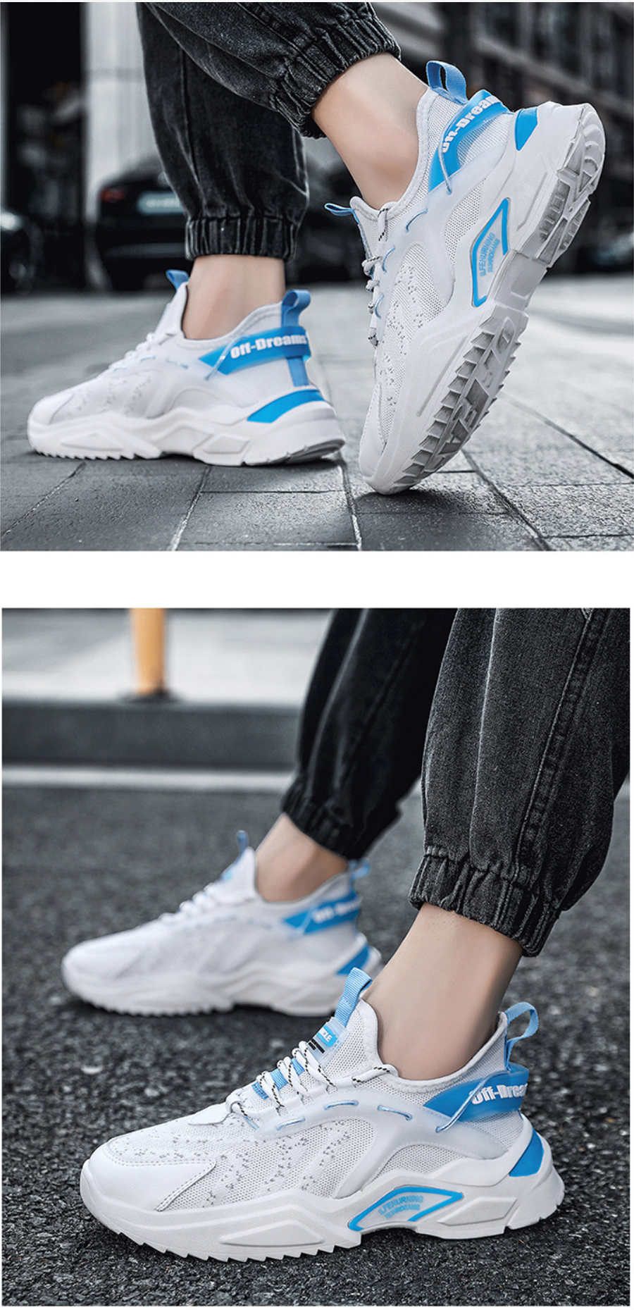 男款飛織網面透氣跑步鞋(zm-039-白藍)(尺碼:39-44碼)(下單後請聯絡客服確認發貨尺碼)