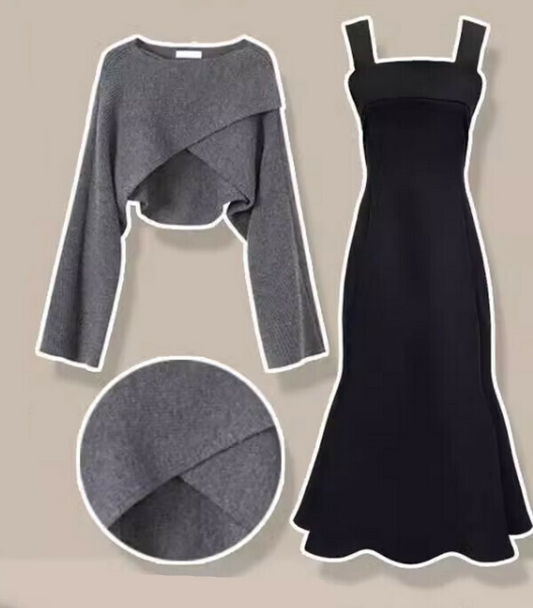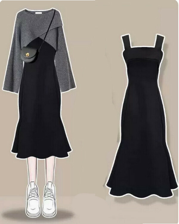 新款魚尾中長款連衣背帶裙#單件(黑色)【M-4XL碼】【下單後聯系客服確認尺碼】】
