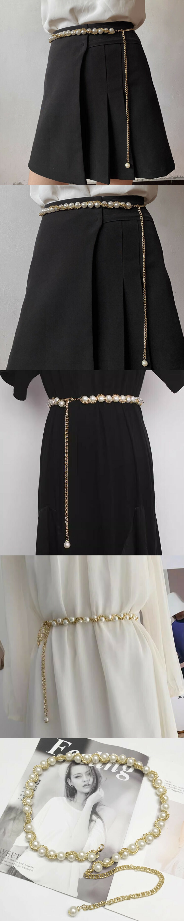 金屬編織鏈條珍珠腰帶鏈