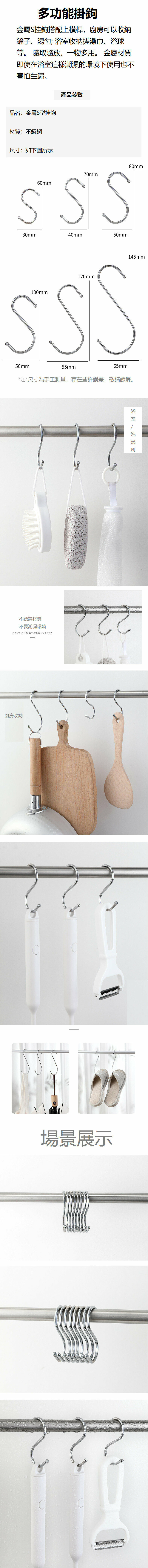 熱推金屬S型掛鈎 (40*70mm/5枚入) |免釘掛鈎 | 不鏽鋼S掛鈎 |浴室廚房掛鉤