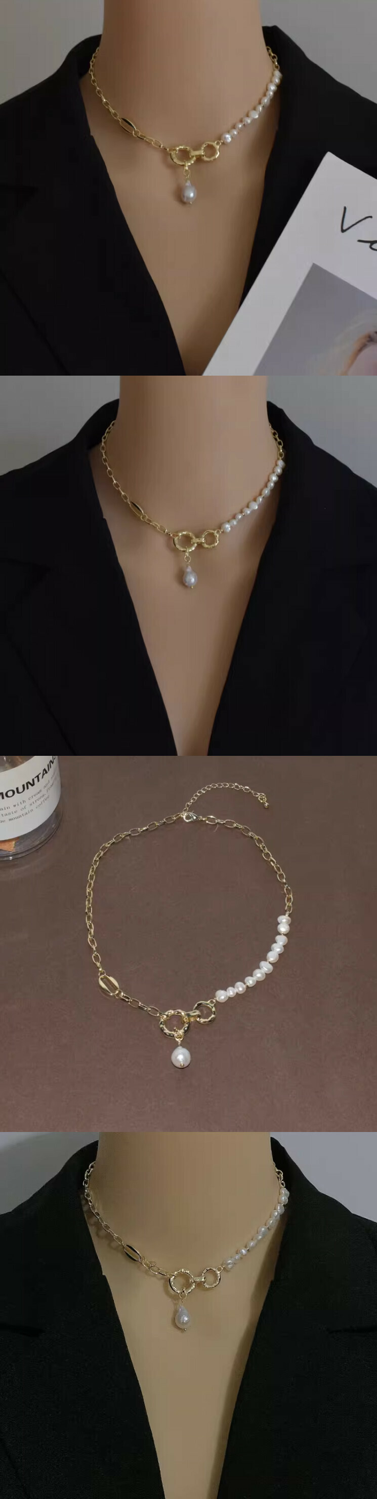 金屬拼接珍珠短款頸鏈