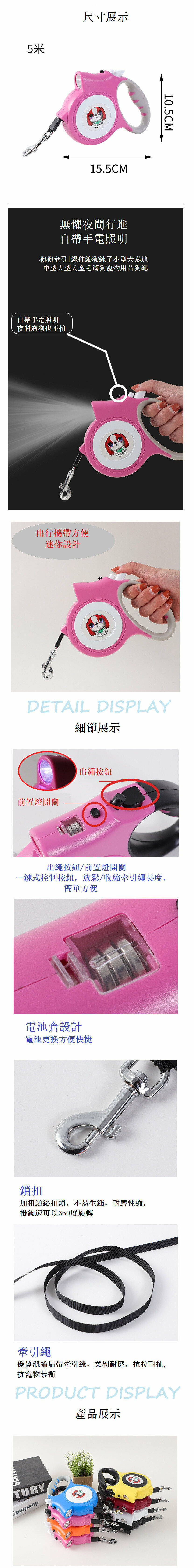 熱推MEYE 寵物牽引繩可自動伸縮帶燈狗拖帶 (帶電筒套裝) 中小型犬5米 (藍色)
