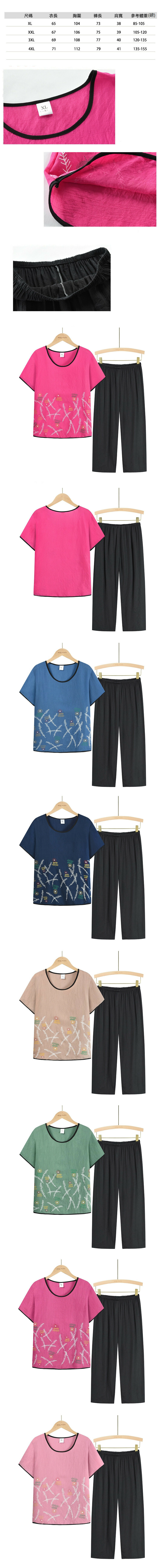 熱推中老年媽媽短袖套裝(XL-4XL碼 藏藍色)【下單後請聯絡客服確認發貨尺碼】