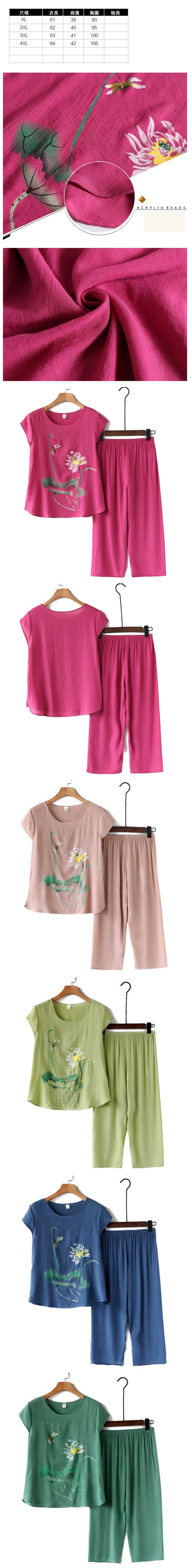 爆款中老年媽媽短袖套裝(XL-4XL碼 粉色)【下單後請聯絡客服確認發貨尺碼】