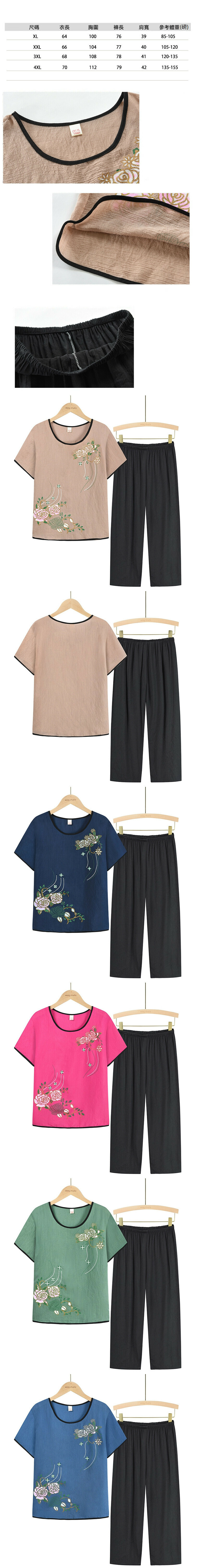 激抵中老年媽媽短袖套裝(XL-4XL碼 玫紅色)【下單後請聯絡客服確認發貨尺碼】