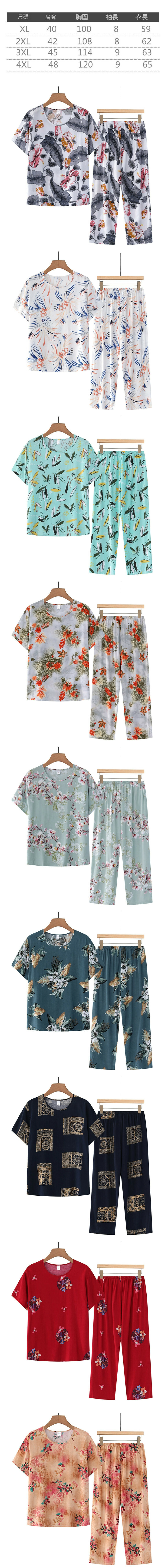 新款中老年媽媽短袖套裝(XL-4XL碼 白色大花)【下單後請聯絡客服確認發貨尺碼】