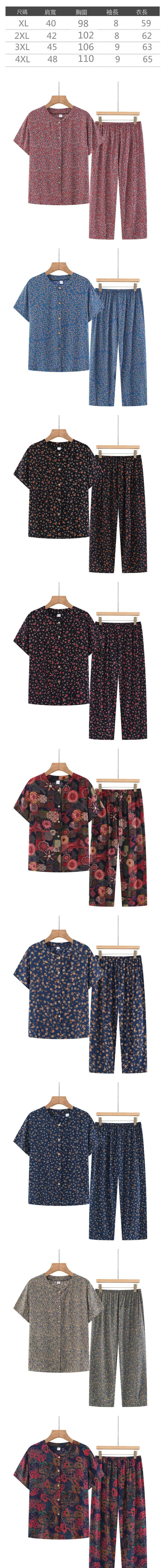 爆款中老年媽媽短袖套裝(XL-4XL碼 深藍碎花)【下單後請聯絡客服確認發貨尺碼】