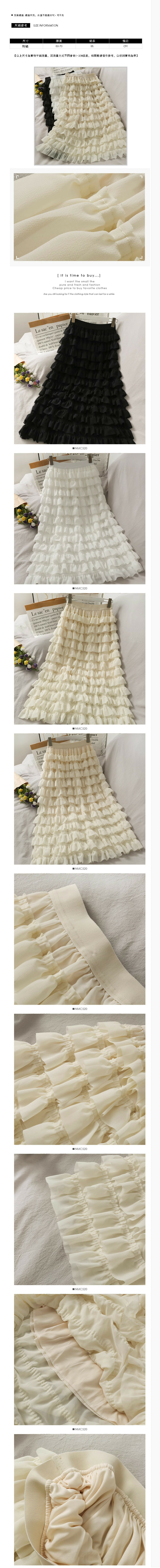 激抵中長款高腰蛋糕裙純色半身裙(杏色)(均碼)