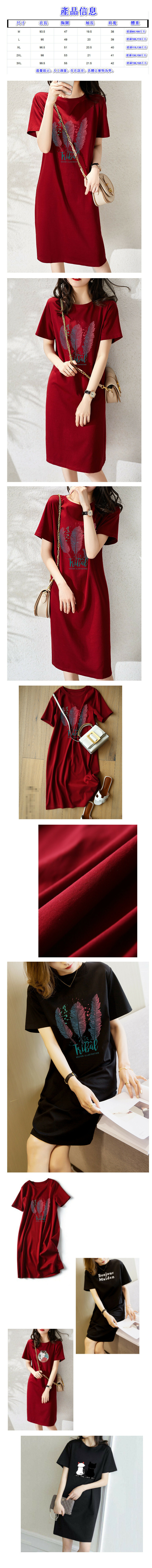 熱賣中長款寬鬆顯瘦T卹連衣裙【6Q625酒紅羽毛】 (M-3XL碼) (下單後聯繫客服確認尺碼)