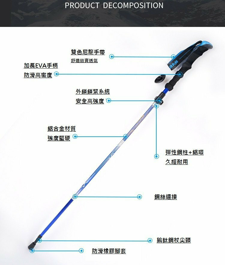 熱推極簡約登山杖(黑色135CM) 適合1.7-1.9M身高人士
