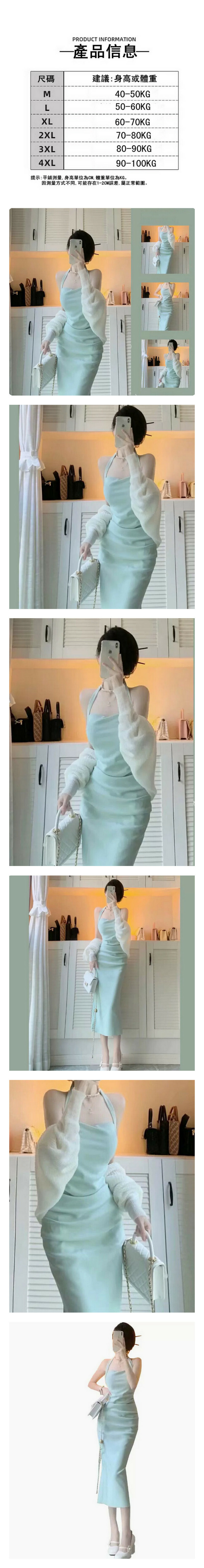 熱推薄荷綠純欲風掛脖吊帶性感連衣裙+開衫(白色)(M-4XL碼) (下單後聯系客服確認尺碼)
