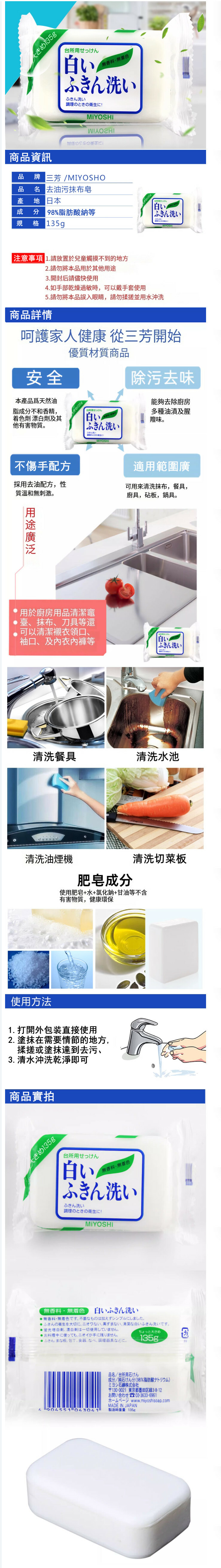 MIYOSHI--廚房用皂去油污去腥抹布皂【增白無添加】135gx1塊