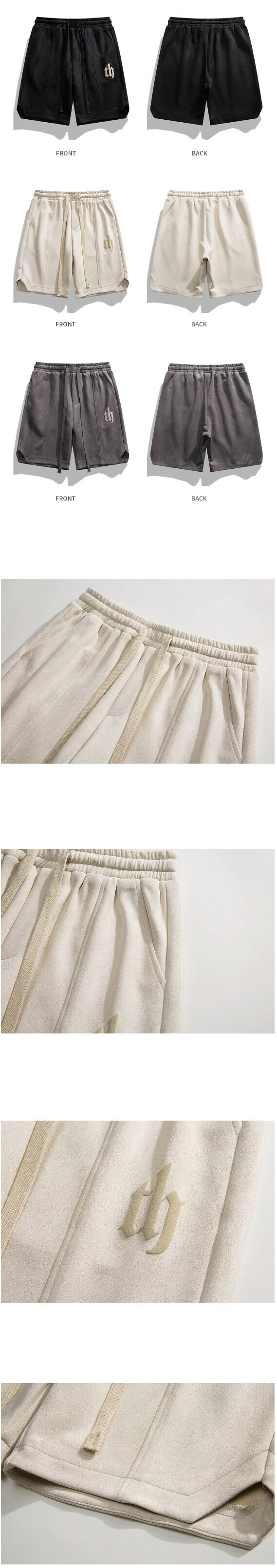 激抵字母印花寬鬆運動五分褲(米杏色)【M-3XL碼】【下單後聯絡客服確認發貨尺碼】