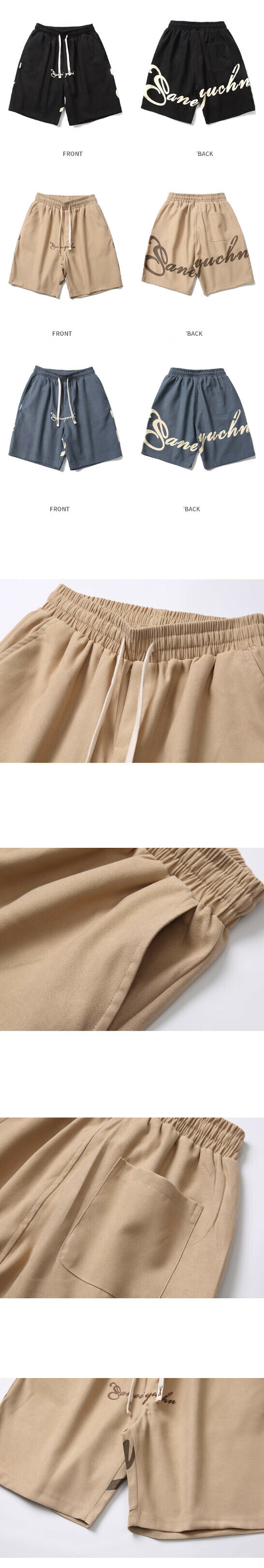 激抵字母印花運動五分褲(卡其色)【M-2XL碼】【下單後聯絡客服確認發貨尺碼】