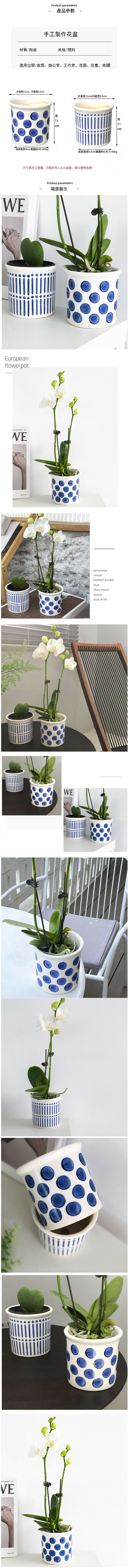 熱賣莫蘭迪藍白色陶瓷花盆【藍色條紋】