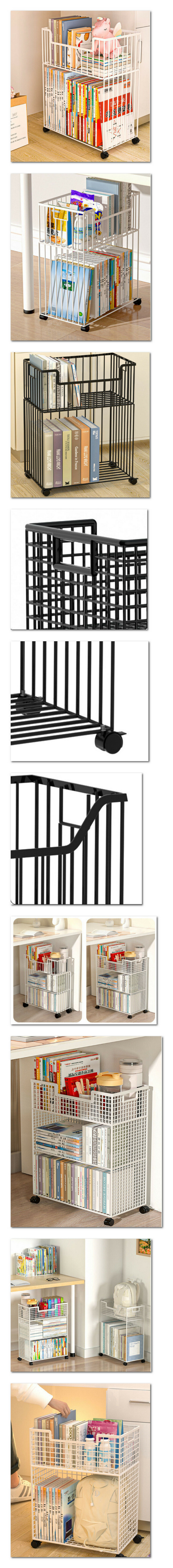 激抵可移動儲物籃 書架 收納置物架【白色三層滑輪款】