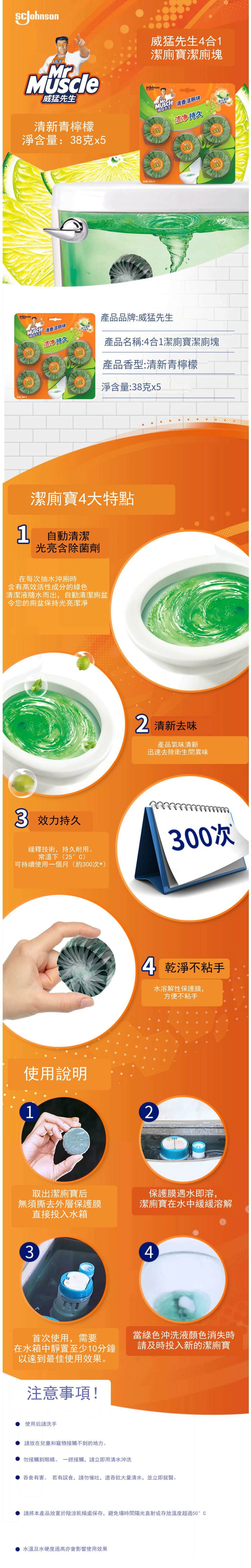 威猛先生--自動沖洗潔廁塊潔廁寶【清香檸檬香】38gx5塊