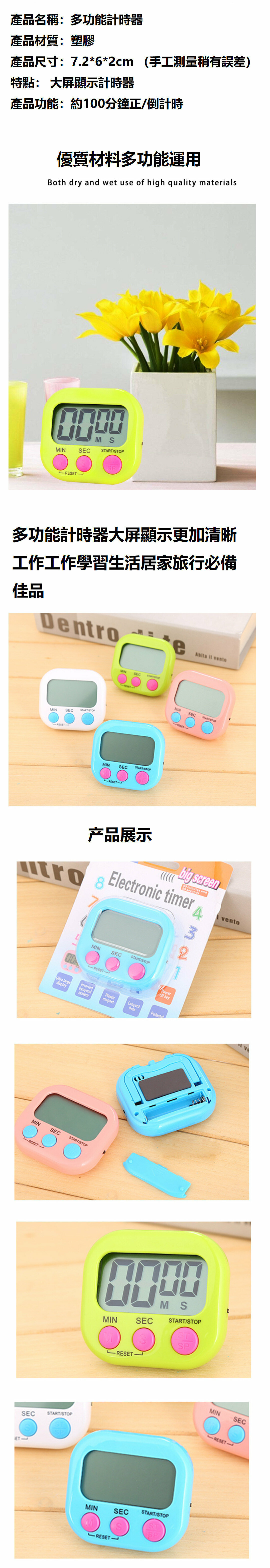 爆款多功能電子秒錶定時磁貼計時器【英文版白色】帶支架磁鐵 廚房定時器 倒數計時器 電子提醒器 計時秒數烘培