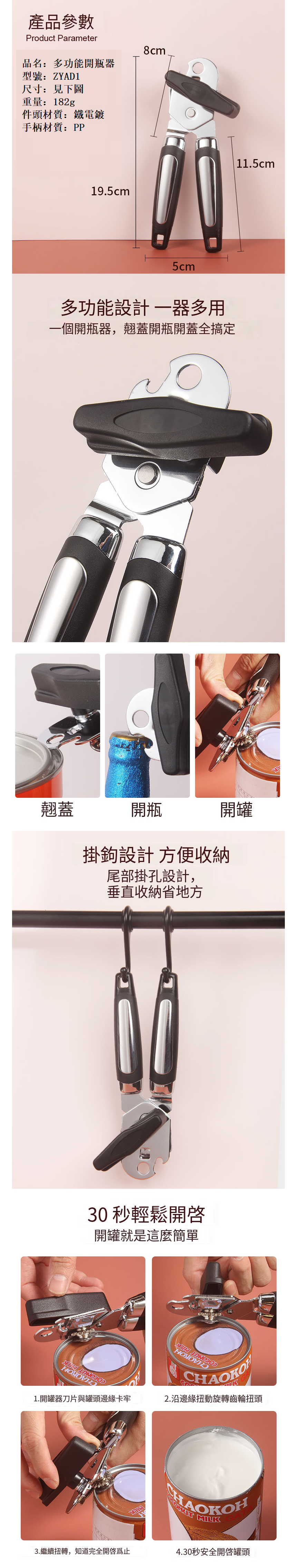 爆款多功能強力罐頭刀開瓶器(塑膠扭手-彩盒裝)