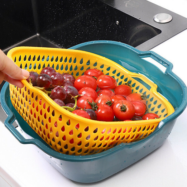 熱推多功能塑料瀝水籃 洗菜籃 水果籃(方形瀝水【特大】)