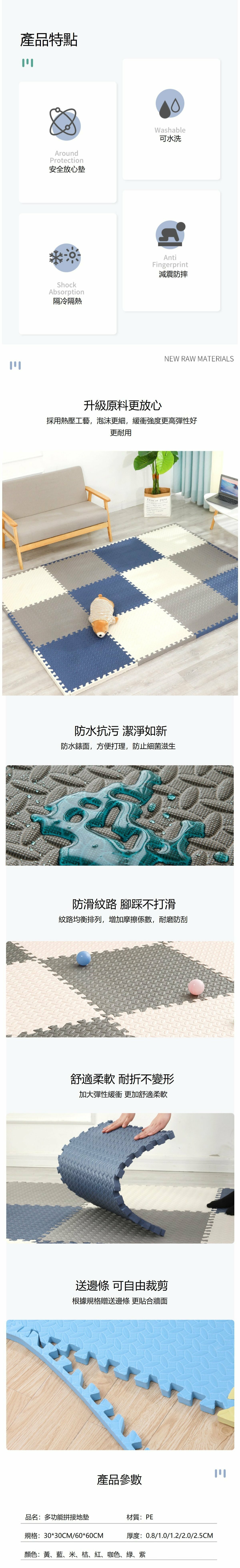 激抵【整片裝】多功能拼接兒童遊戲墊地氈(黃色 60cm*60cm*10mm 十字紋)