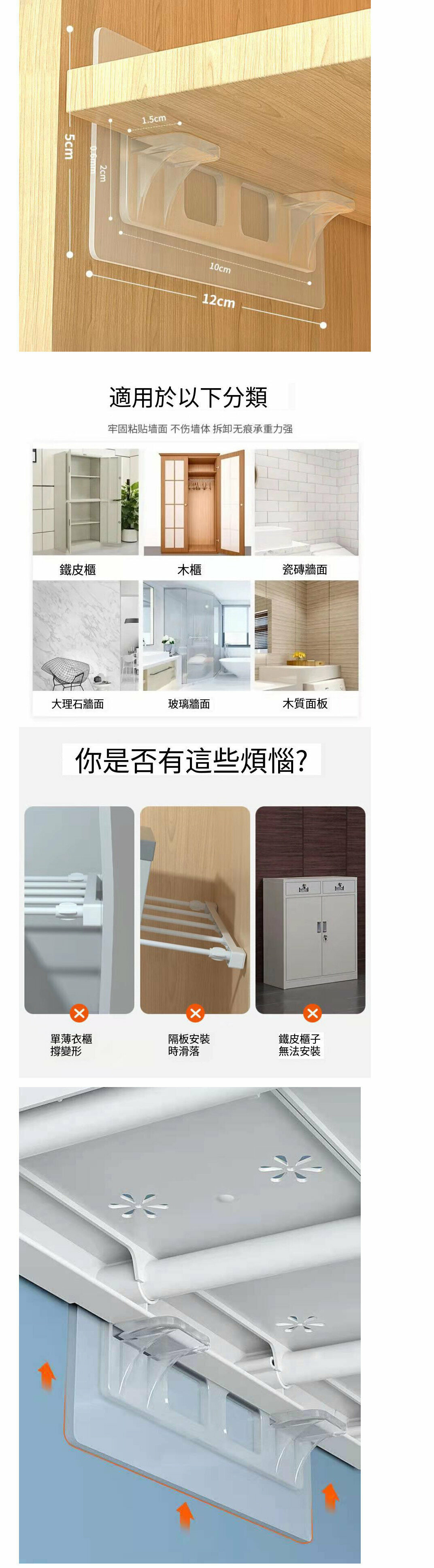 熱賣多用途層板貼 免鑽窿層板支架 隔板支撐架無痕貼 層板固定托(雙排隔板托-2個裝)