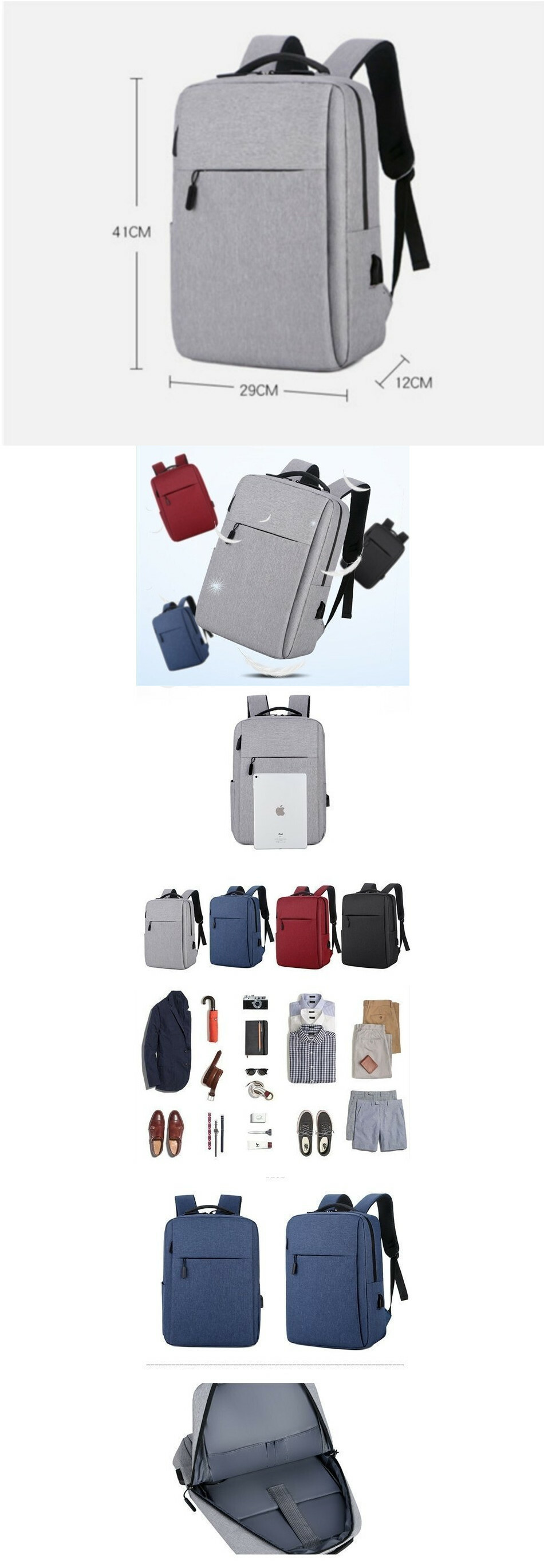 爆款多用途電腦背包 雙肩款時尚電腦大容量書包旅行潮男運動款袋(淺灰色)#