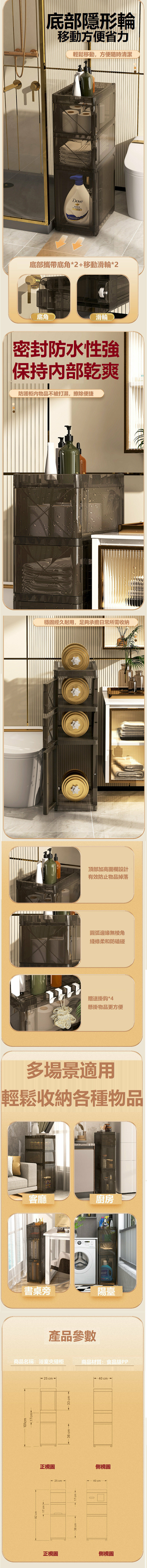 熱賣多用途帶轆可移動儲物櫃 浴室置物架【1大門+2小門】