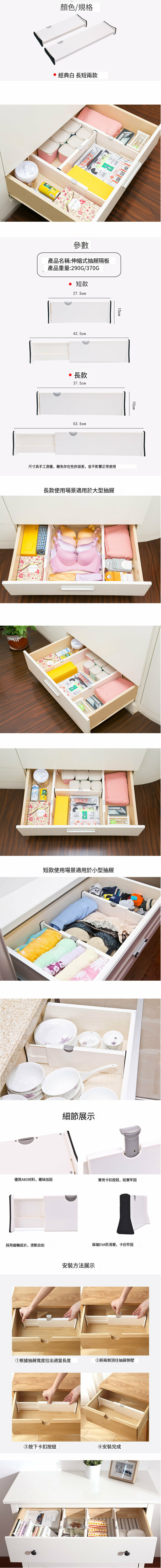 激抵多用途伸縮抽屜分隔板[白色短款 27.5-43.5]