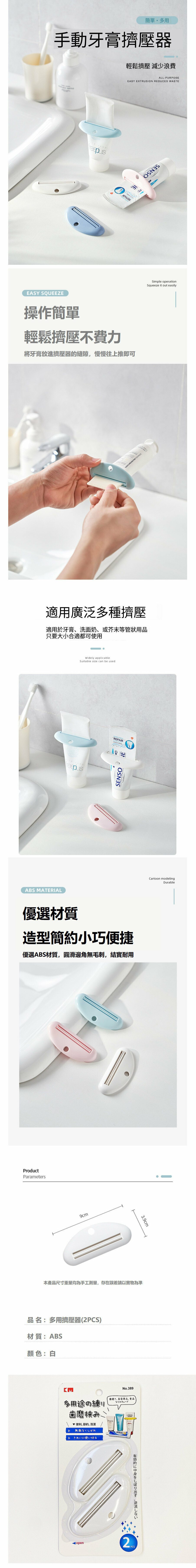 激抵多用途擠牙膏器[2個裝-白色]|擠壓器|洗面乳擠壓
