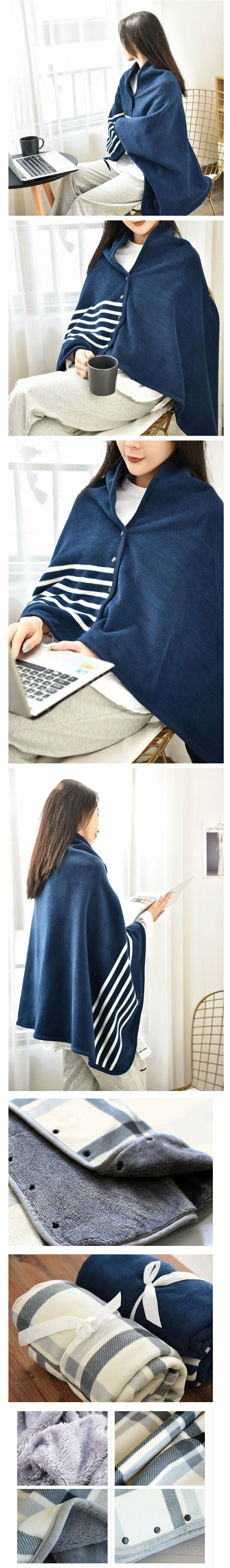 激抵多功能披肩毯秋冬季辦公室午睡保暖小毯子 毛毯 藍白條披肩 100*140CM