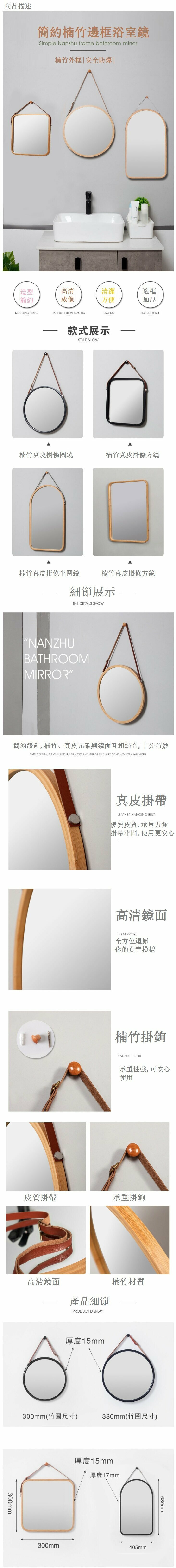 激抵楠竹浴室衛生間鏡子壁掛貼牆洗手台化妝鏡(小小號圓鏡竹本色)
