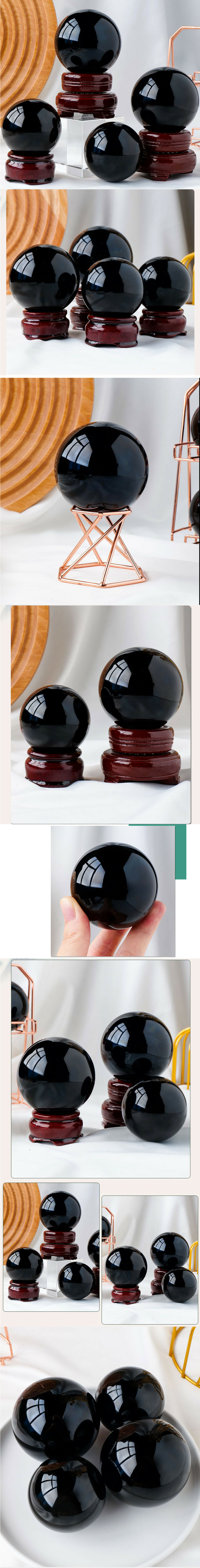 天然黑曜石擺件--水晶球擺飾 桌上玄關擺設【6cm+底座】1件