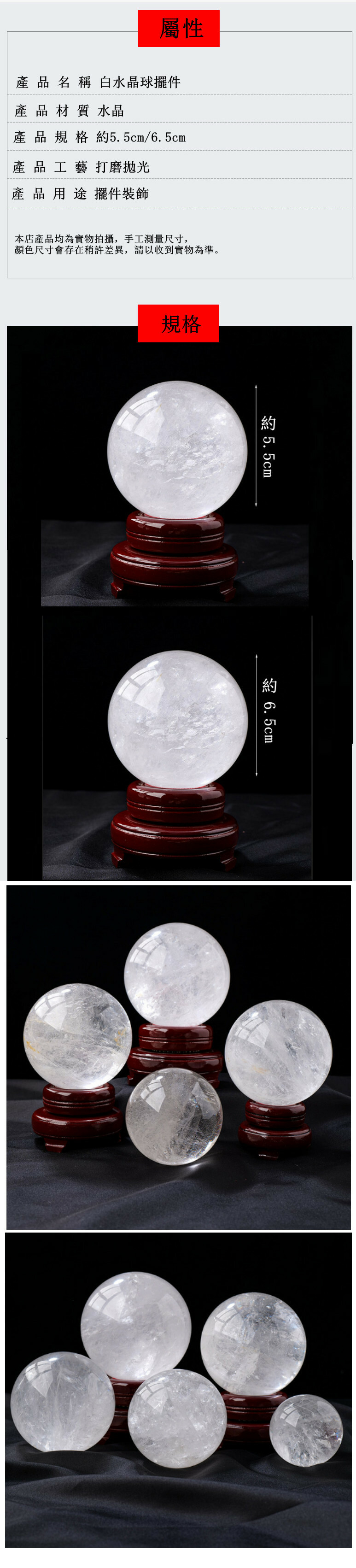 天然白水晶擺件--水晶球擺飾 桌上玄關擺設【约6.5cm+底座】1件