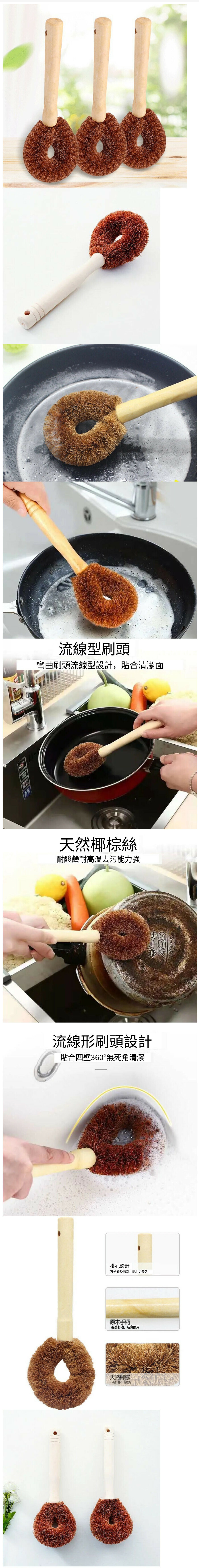 熱賣天然木柄椰棕毛鍋刷 (棕色)
