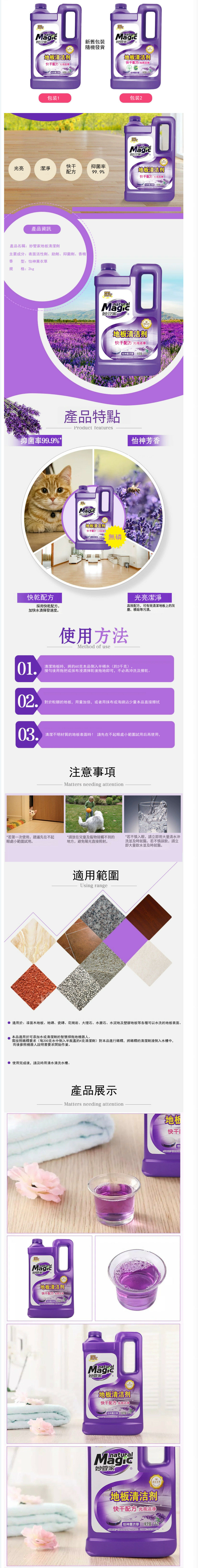(natural Magic)地板清潔劑木地板速幹抑菌清香地瓷磚專用【2kg*1瓶裝 新舊包裝隨機發貨】