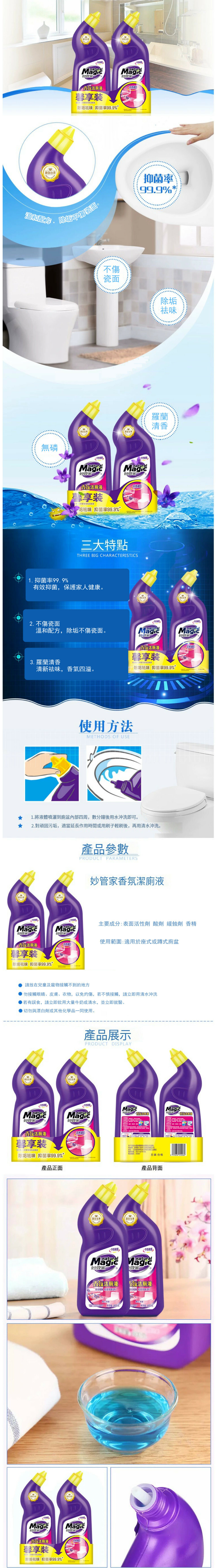 (natural Magic)花香潔廁液强力除垢除臭清香型廁所【羅蘭香氛潔廁液600g*1瓶裝】