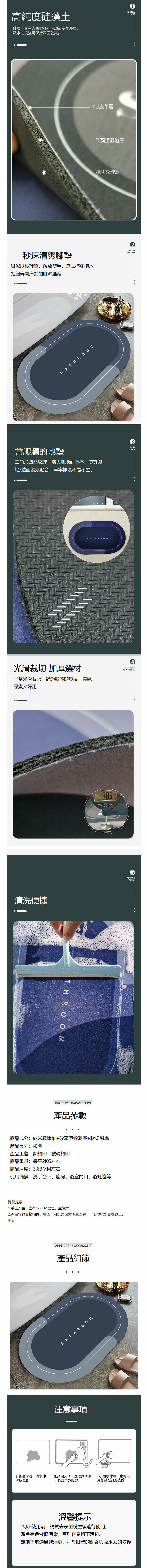 激抵[深藍/橢圓] 防滑浴室地墊門口吸水腳墊