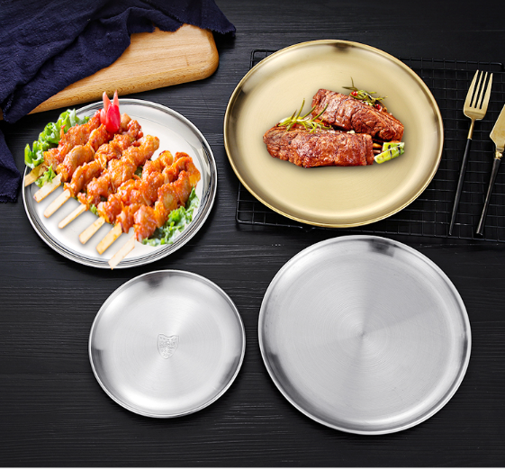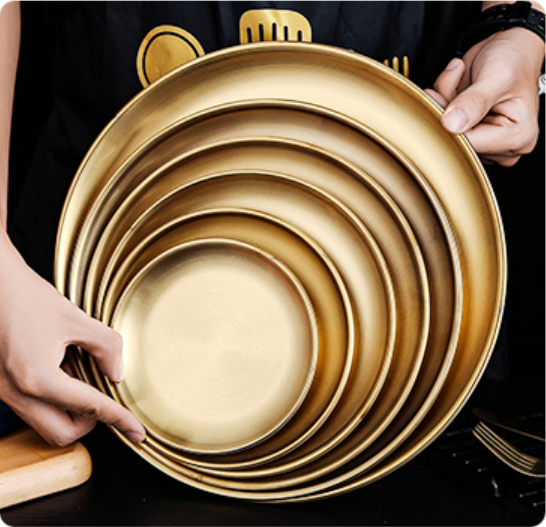 新款1個裝不銹鋼燒烤盤(拉絲啞光款金色)(規格:14-30CM)(下單後請聯絡客服確認發貨尺寸)