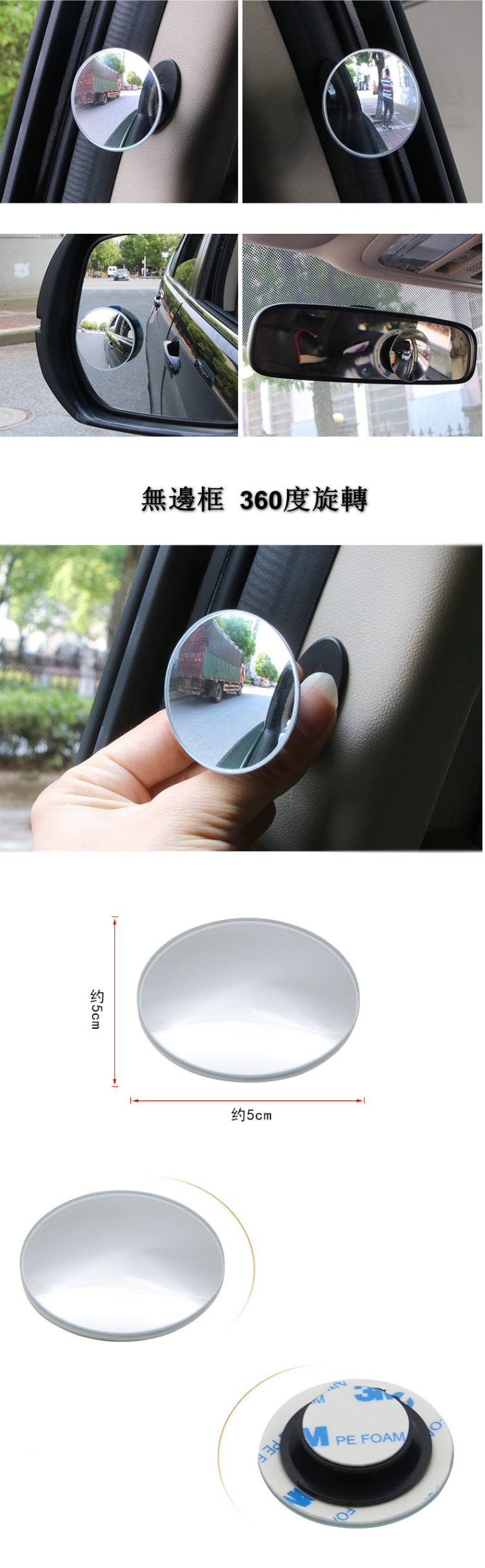 新款【1對裝】車載二排倒車輔助鏡盲點鏡後視鏡(無邊框款)
