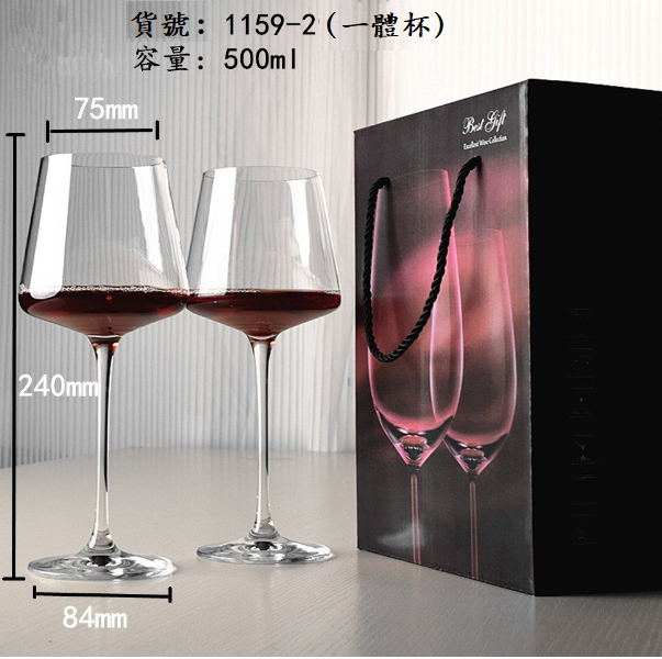 新款【1對杯禮盒裝】水晶玻璃紅酒杯(貨號:1159-2)