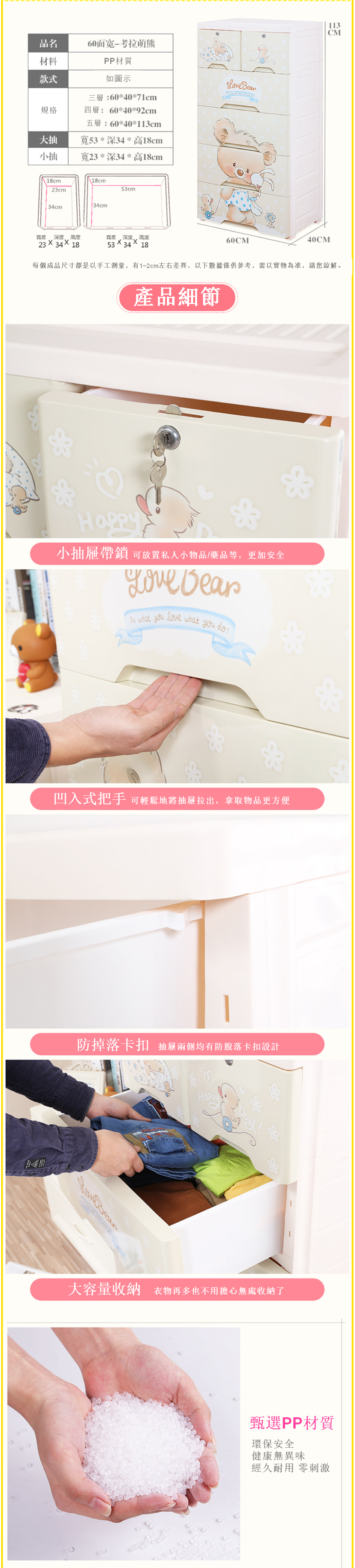 新款【3層】加厚抽屜式塑膠收納櫃(60面寬 考拉萌熊)