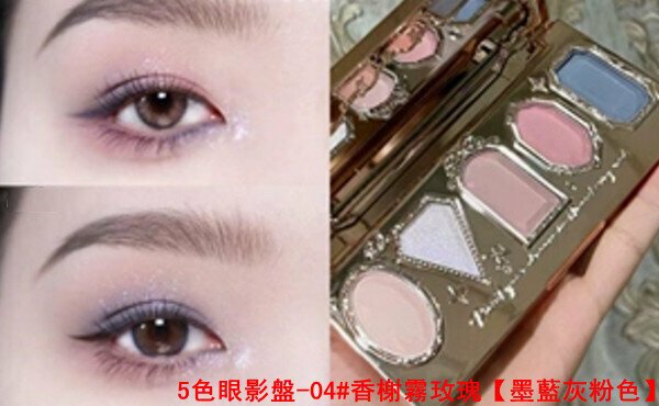新款5色寶石眼影盤-04#香榭霧玫瑰【墨藍灰粉色】