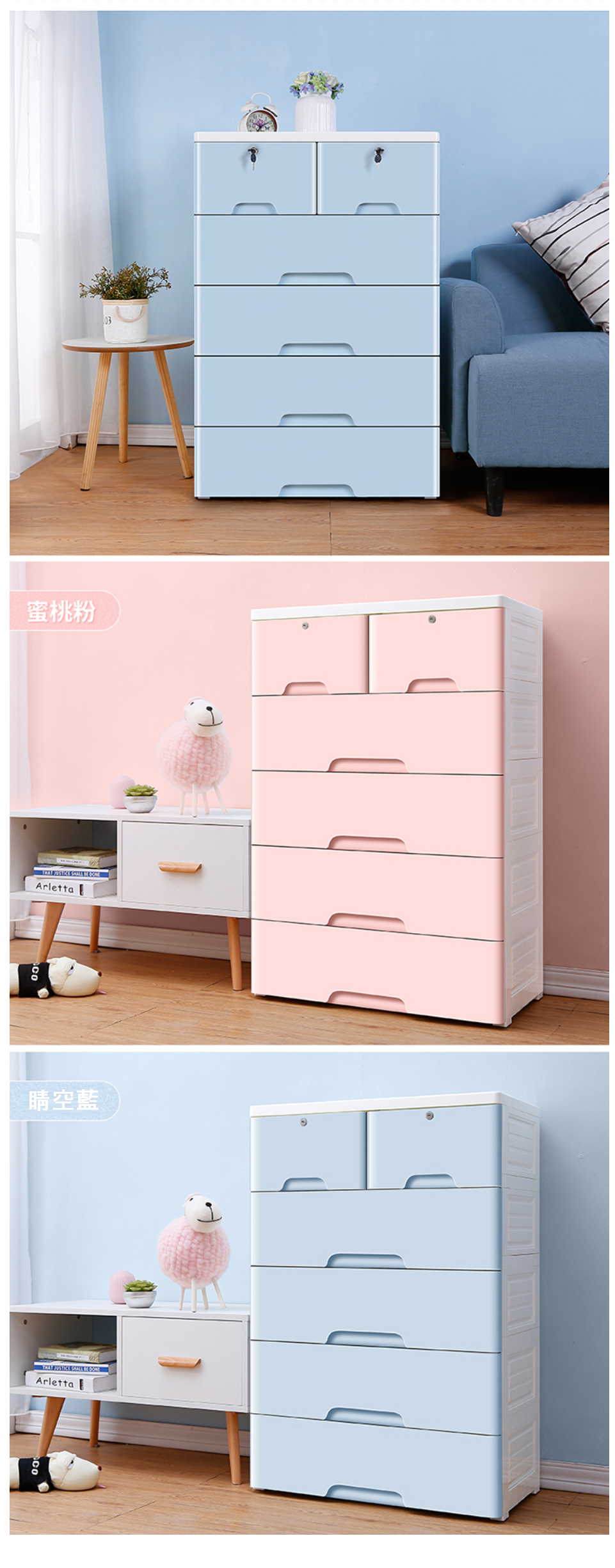 新款【6層】加厚特大號塑膠抽屜式收納櫃(65面寬 晴空藍)