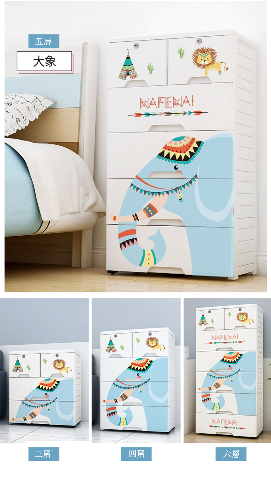 新款【6層】加厚特大號塑膠收納櫃抽屜式( 60面寬 印度象)