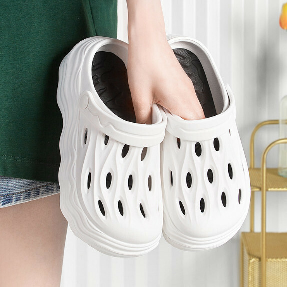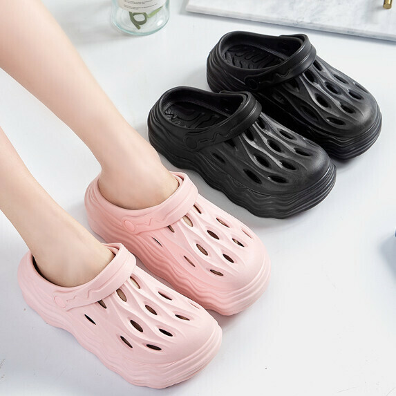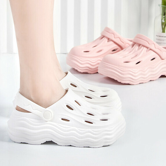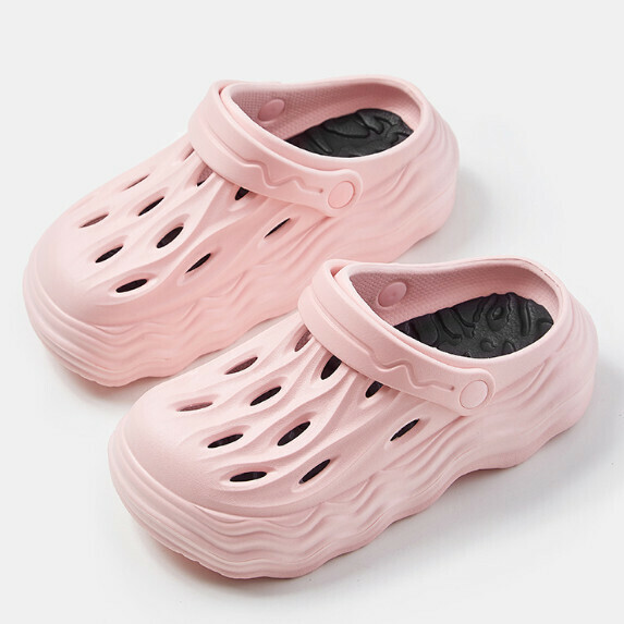 新款7CM波浪洞洞拖鞋女(粉紅色【36_41碼】(下單後聯繫客服確認發貨尺碼)