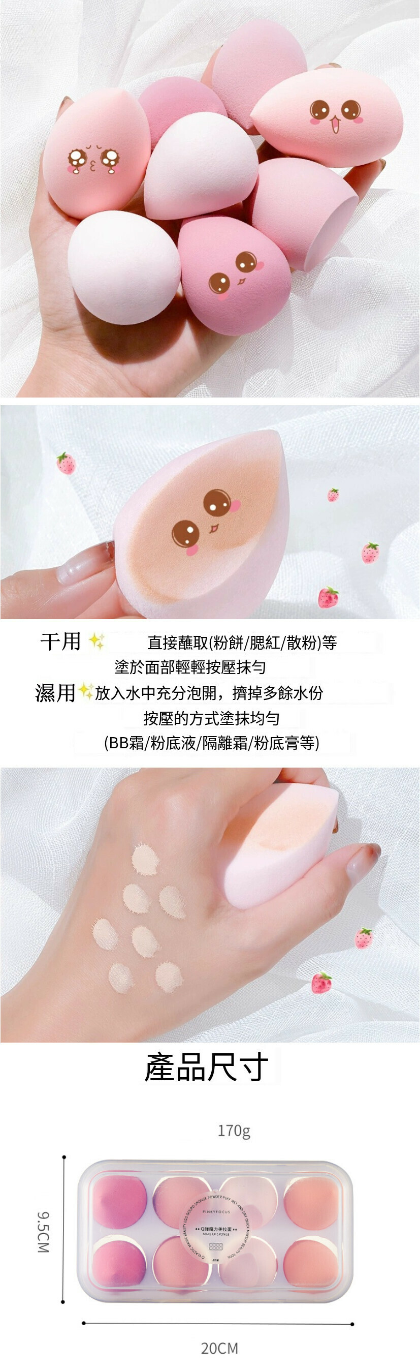 新款8個裝乾濕兩用柔軟細膩化妝粉撲(牛油果綠)