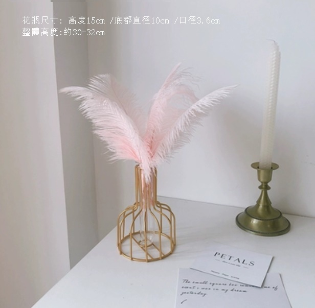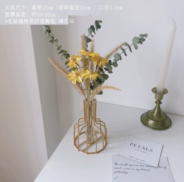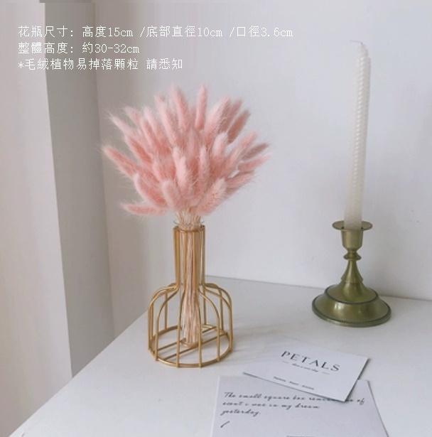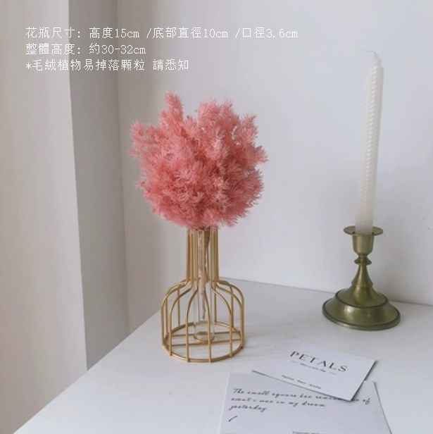 新款風幹花裝飾擺件(金色鐵藝花瓶 小粉雪松)
